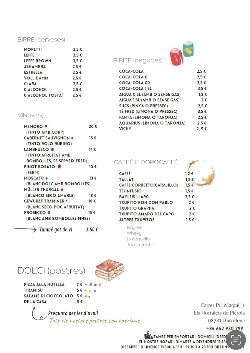 Welcome to Vero Gusto Pizza i Mes, a hidden gem in the heart of Els Hostalets de Pierola. This charming pizzeria offers a warm, inviting atmosphere that feels like home. With an extensive menu featuring a delightful range of pizzas and pastas, there's something for everyone, all priced affordably between €10 and €15.